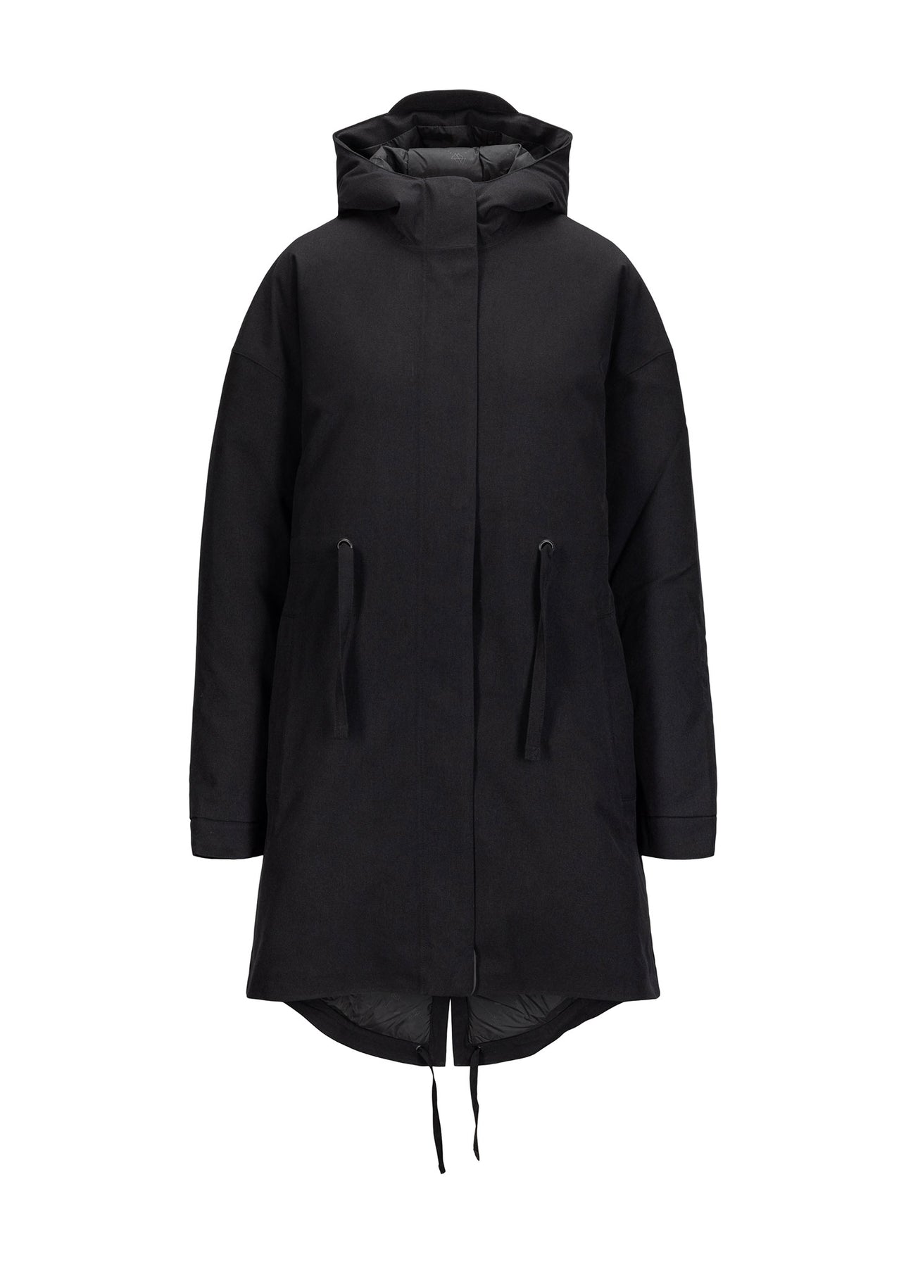 Snøstorm Parka i fargen New Black er en vanntett regnjakke, foret med 250 gsm RDS-sertifisert dun som holder deg varm og beskyttet i regn, vind og snø. Jakken har justerbar hette, varme lommer og snøring rundt midjen med en "oversized fit".