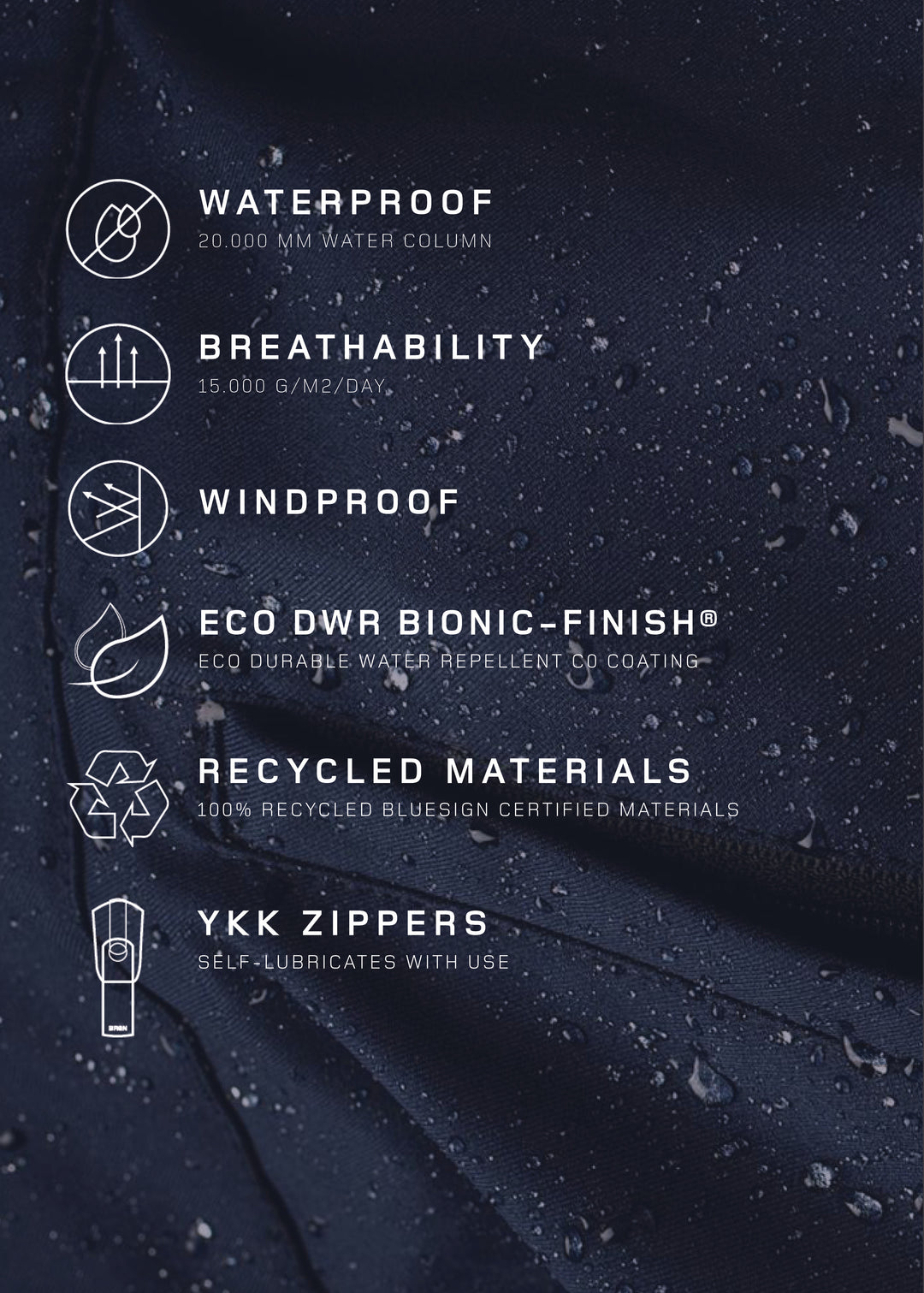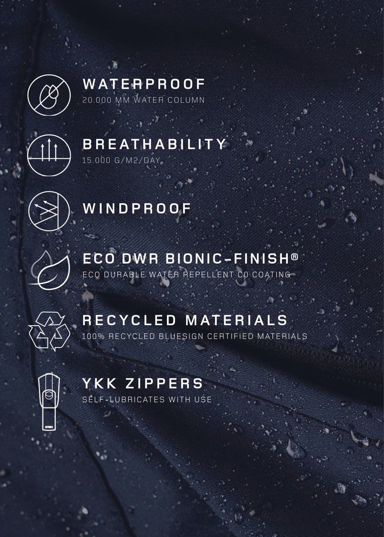 Monsun i fargen Sunset Orange, er en vanntett regnjakke med normal til oversized fasong og fine detaljer som cap sleeves, belte i tunnel og skjult hette i kragen. Jakken har hele 20.000 i vannsøyle og god pusteevne, slik at den kan brukes hele året.